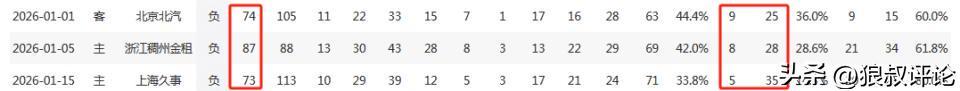 值得一提的是上一场客场面对北京的比赛,情况也比较接近,广东以74-105大败北京,全队三分为25投9中,除了萨姆纳开抡,其他球员能站出来的贡献比较有限。